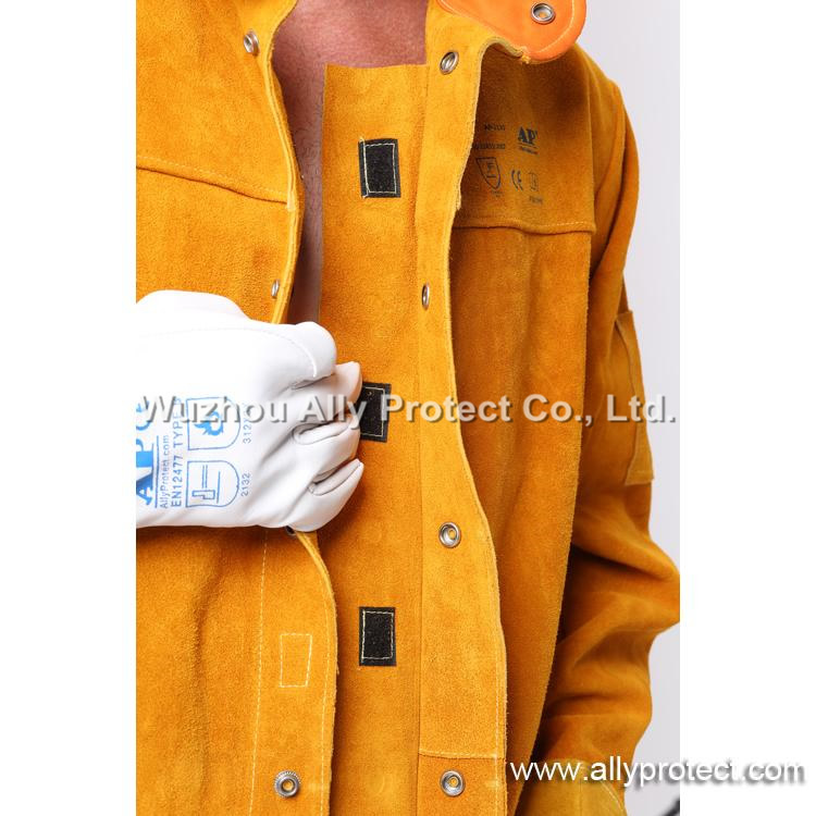 • Product description: [ AP ]CE certificated.Full leather welding jacket for perfect protection and Golden colour make products fashion and showy.
