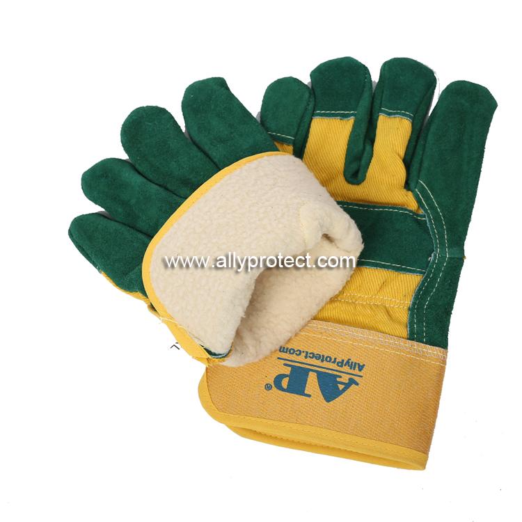該款手套手掌部分采用耐磨、抗穿刺的牛二層皮制成質(zhì)地厚實(shí)且柔軟,抗穿刺及耐磨程度均勻;