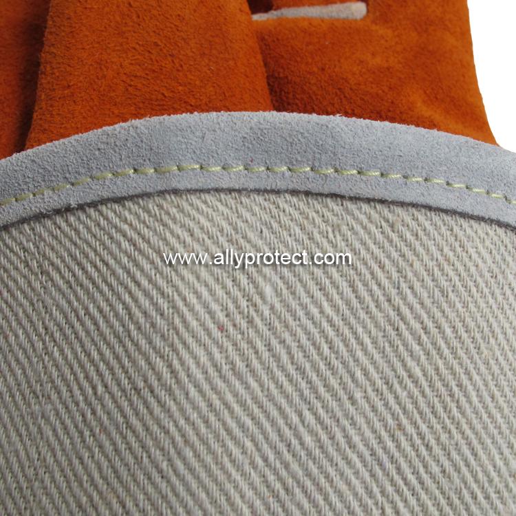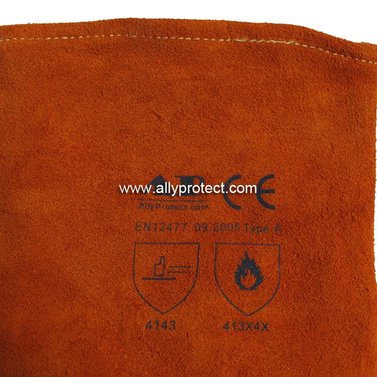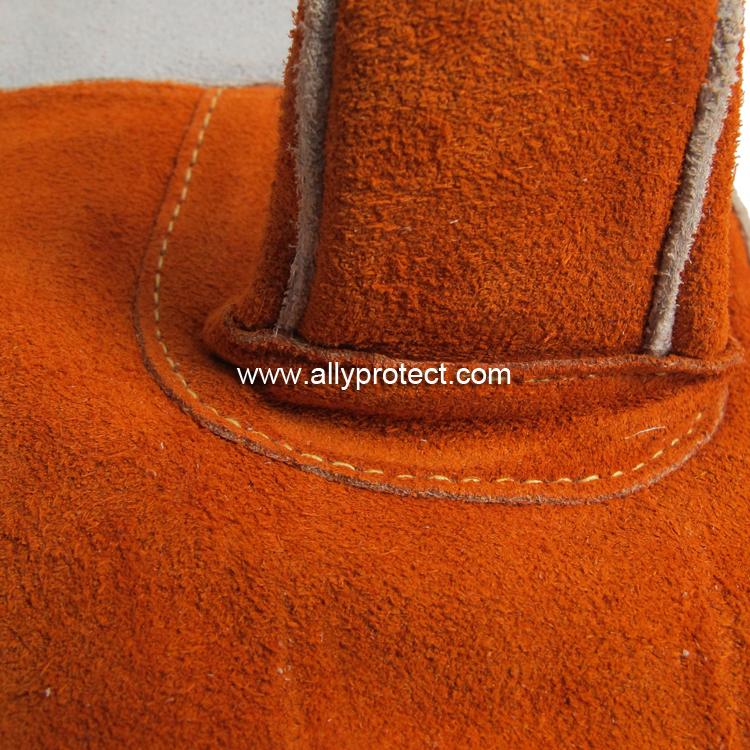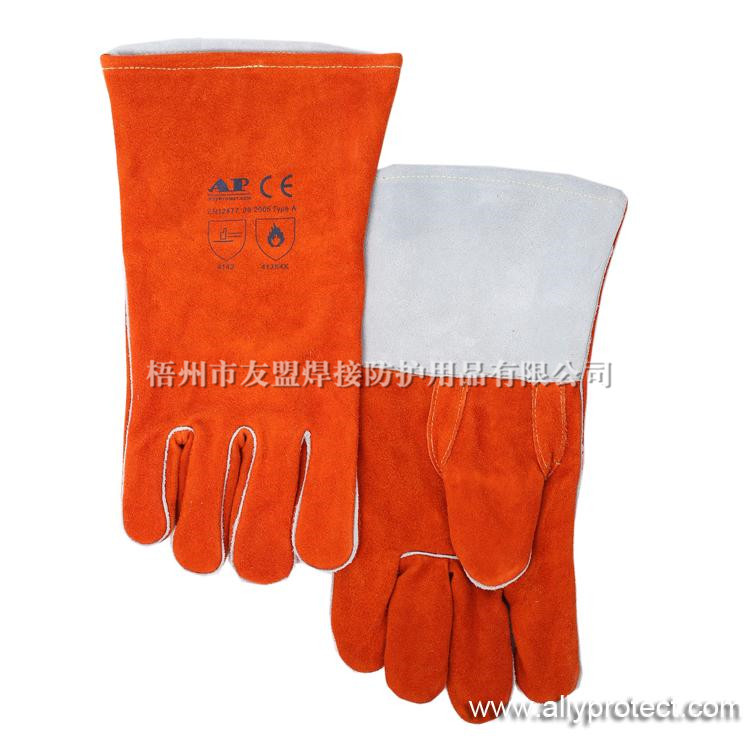 • 產(chǎn)品描述: [ AP ]銹橙色牛二層皮全皮電焊手套,直拇指護(hù)縫設(shè)計(jì),適用于焊接、切割及搬運(yùn)等用途。