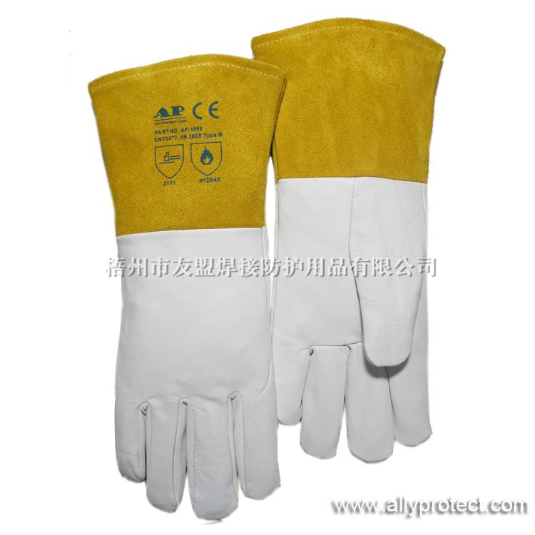 • 產(chǎn)品描述: [ AP ]羊青皮手套,無縫食指和加長13CM皮袖設(shè)計,專為TIG/MIG/CO2等氣體保護(hù)焊設(shè)計。